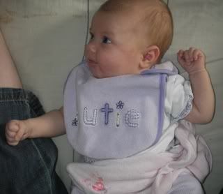 LucyLuce slept 8 hours again last night--woo hoo! She's taking a great nap right now too. Oh, and I've caught her doing this funny thing with her thumb several times. It is exactly what my mom does! Must be genetic.